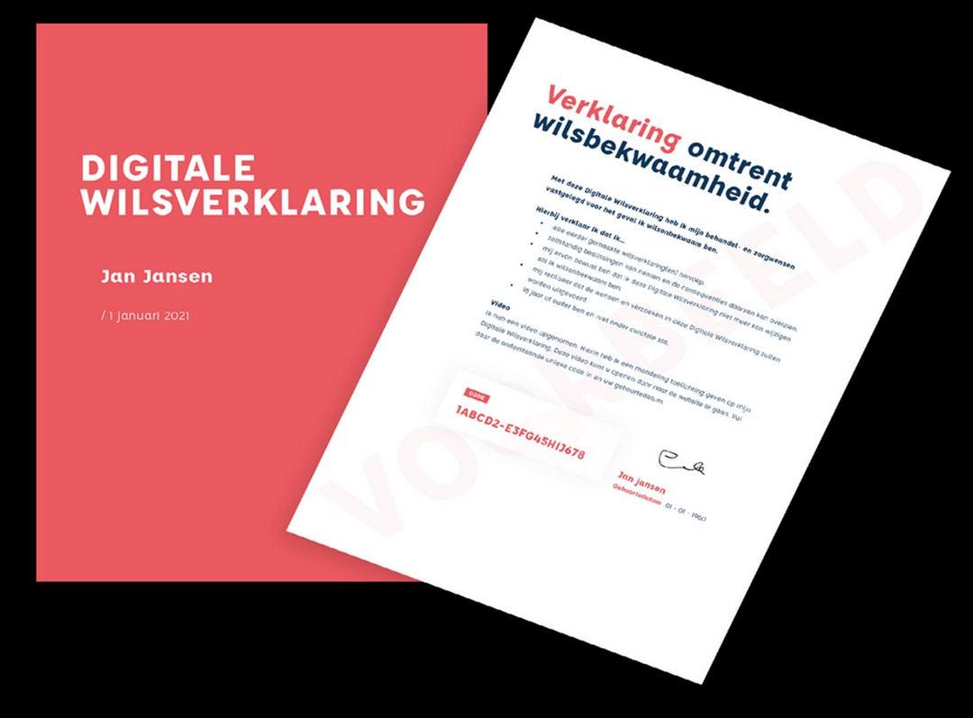 Met een eigen wilsverklaring krijg je wel wat je wenst als jij wilsonbekwaam wordt, ontzorg en informeer je je naasten en geef je jouw artsen en behandelaars zekerheid en comfort bij het uitvoeren van de wilsverklaringen.