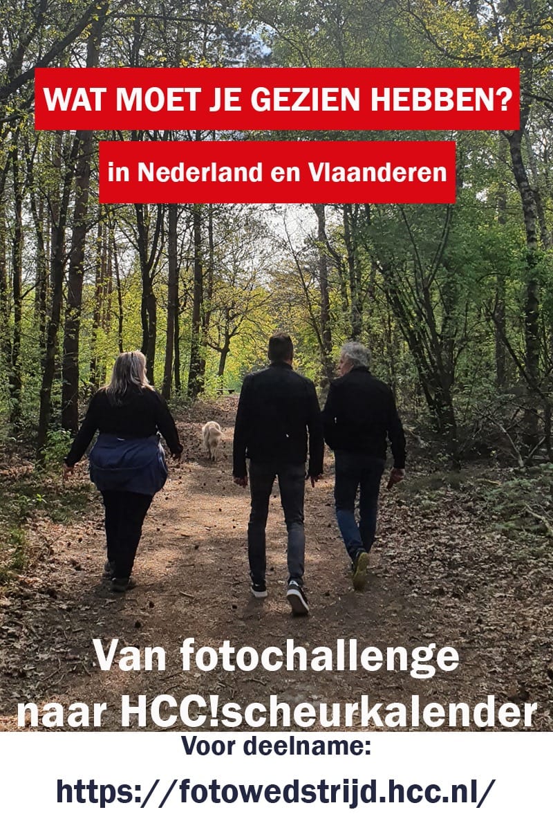 Met een persoonlijke foto geven zij antwoord op de vraag ‘Wat vind jij dat je gezien moet hebben in Nederland of Vlaanderen?’ Uit alle inzendingen zullen 320 foto’s geselecteerd worden en als scheurkalender op 5 oktober 2024 op de HCC!kennisdag in Expo Houten gepresenteerd worden. Tijdens deze bijeenkomst, waar alle inzenders voor worden uitgenodigd, wordt de kalender gelanceerd. Het is ook een spannend moment voor de inzenders om antwoord te krijgen op een voor hen belangrijke vraag: sta ik erin met mijn ingezonden foto?