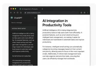 In Atlas is ChatGPT direct ingebouwd. Terwijl je een webpagina bekijkt, kun je in een zijbalk vragen stellen als “Vat deze tekst samen” of “Schrijf dit bericht beleefder”. De browser begrijpt wat je op het scherm ziet en reageert daarop.