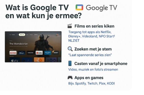 - Een smart-tv van o.a. Sony, Philips of TCL (model vanaf ± 2021)