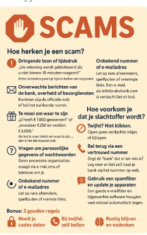 Hier is een duidelijke en praktische lijst met tips om oplichting (scams) te herkennen en te voorkomen: