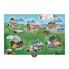 Op 10 juni 2025 brengt PostNL het postzegelvel Kamperen in Nederland uit, met 6 postzegels in 6 verschillende ontwerpen. Op de postzegels staat de waardeaanduiding 1 voor post tot en met 20 gram met een bestemming binnen Nederland. Aan het postzegelvel is een briefkaart met zomerse groeten vastgemaakt met een perforatielijn. Op de achterkant van het vel staat een typisch campingrecept met macaroni. Het postzegelvel Kamperen in Nederland is ontworpen door het bureau álleburen uit Arnhem.