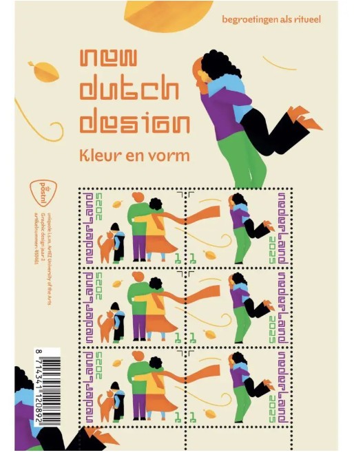 Het ontwerp van de postzegels is tijdens het studiejaar 2023-2024 gemaakt door 2e-jaarsstudenten Graphic Design aan ArtEZ in Zwolle, in samenwerking met Nicole Uniquole. Op de postzegels staat de waardeaanduiding 1 voor post tot en met 20 gram met een bestemming binnen Nederland. De nieuwe serie New Dutch Design, opvolger van de serie Typisch Nederland, is gewijd aan het thema ‘vieren’, uitgebeeld in kleur en vorm. Na een brainstorm over het thema ‘vieren’ bedachten de studenten om dit onderwerp vorm te geven door aan verschillende rituelen aandacht te schenken. Bij de uitgifte van 21 april, een vel met 6 bijzondere postzegels in 2 verschillende ontwerpen, staat het ritueel van begroetingen centraal. Eerder dit jaar, op 17 februari, verscheen al het eerste vel uit de serie New Dutch Design, met als onderwerp koffie- en theerituelen. Later dit jaar volgen in de serie nog postzegels over muziek maken als ritueel (11 augustus) en dansen als ritueel (22 september). Op de postzegels staat de waardeaanduiding 1 voor post tot en met 20 gram met een bestemming binnen Nederland.