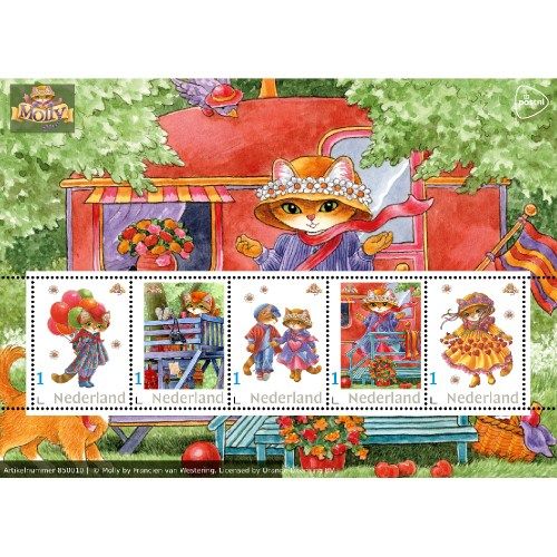 PostNL geeft op 2 januari 2025 het postzegelvel Poes Molly 2025 uit, met illustraties van Francien van Westering. Op elk van de 5 persoonlijke postzegels staat de waardeaanduiding 1 voor post tot en met 20 gram met een bestemming binnen Nederland. Het ontwerp van de postzegels is gemaakt door artdirector Yvonne Warmerdam van Orange Licensing uit Gouda.