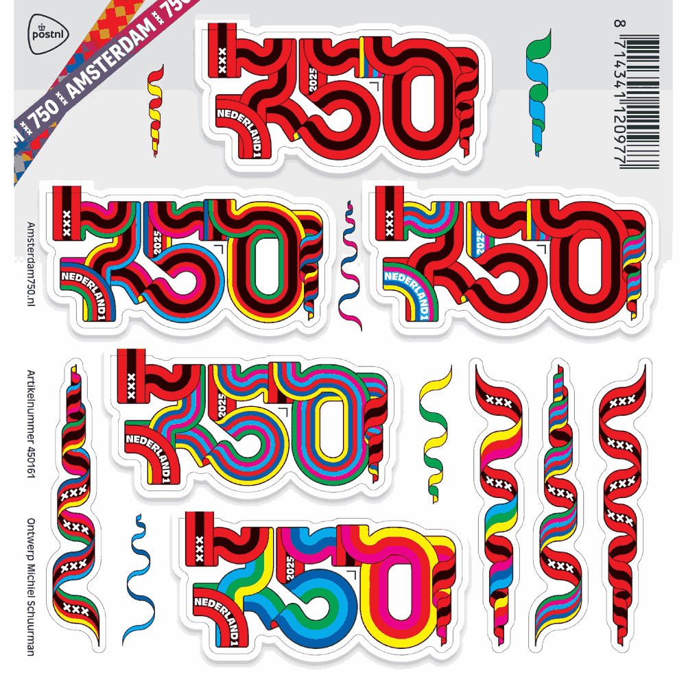 De uitgifte is onderdeel van de viering van de 750e verjaardag van de hoofdstad. Op 27 oktober 2025 bestaat Amsterdam 750 jaar en dat viert de stad een jaar lang. Op 27 oktober 2024 is de viering van start gegaan. Het postzegelvel Amsterdam 750 jaar is ontworpen door grafisch ontwerper Michiel Schuurman uit Amsterdam. Op de postzegels staat de waardeaanduiding 1 voor post tot en met 20 gram met een bestemming binnen Nederland.