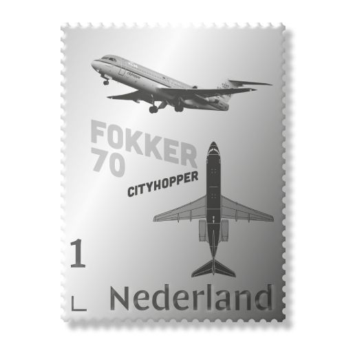 Ontwerper Frank Janse vereeuwigde het toestel op een prachtige postzegel met zilver, verpakt in een luxe passe-partoutomslag.
